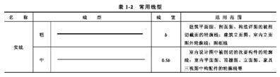室内设计图纸主要由各种线条构成,不同的线型表示不同的对象和不同的部位,代表着不同的含义。为了图面能够清晰、准确、美观地表达设计思想,工程实践中采用了一套常用的线型,并规范了它们的使用范围.