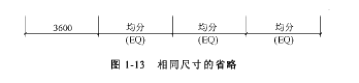 室内设计图中连续重复的构配件等,当不易标明定位尺寸时,可以在总尺寸的控制下,不用数值而用“均分”或“EQ”字样表示定位尺寸。