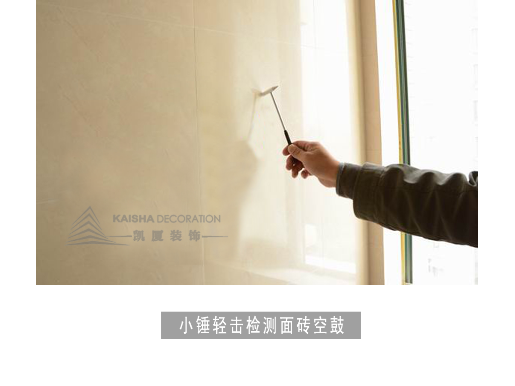2、质检人员正在检测墙面砖空鼓。